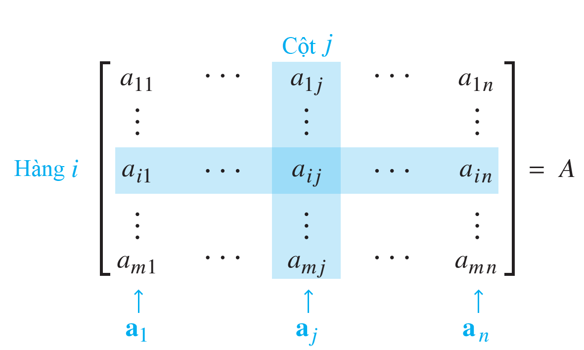 4. Kí hiệu $A=[a_{ij}]_{m\times n}$ (hoặc $A=(a_{ij})_{m\times n}$) được dùng khi nói đến một ma trận tổng quát nào đó có cấp $m\times n$.